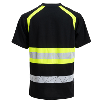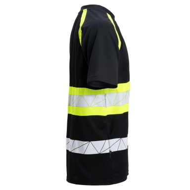 Ar pastiprinātu apaļu kakla izgriezumu tas ir izgatavots no mīksta un ļoti elastīga materiāla. Tas novada mitrumu prom no ādas virsmas un uztur valkātāju sausu un svaigu. Poliestera T-krekls arī palīdz atdzesēt ķermeni. Kreklam ir kontrastējošas detaļas ar atstarojošiem elementiem.