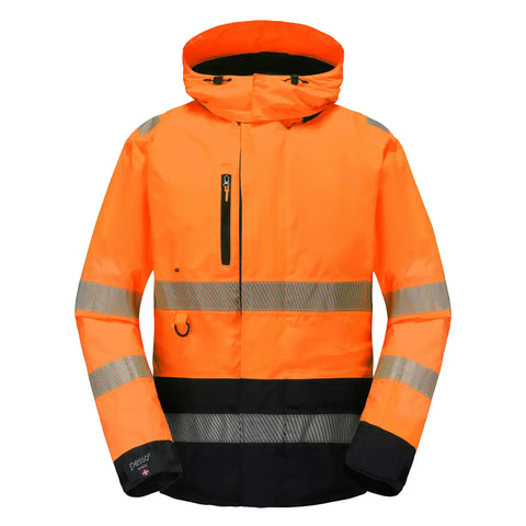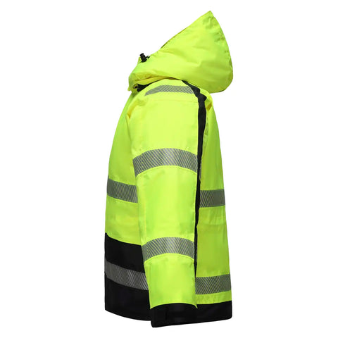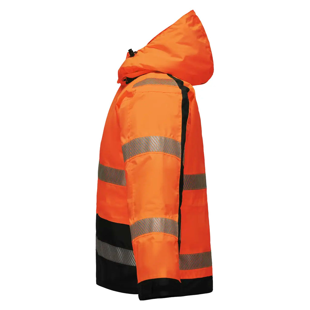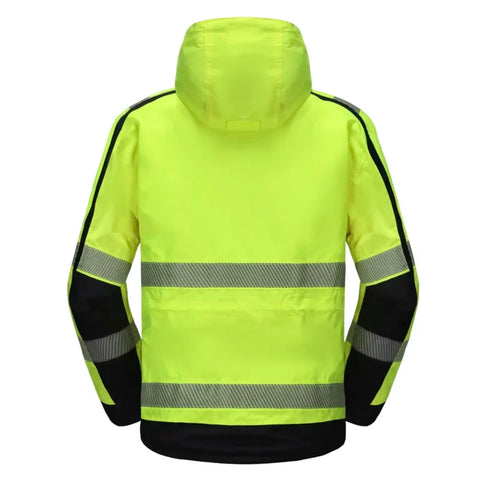 Vēja necaurlaidīga, ūdensnecaurlaidīga, elpojoša, augstas redzamības brīdinājuma jaka. Moderns, ērts modelis, kas neierobežo kustību brīvību. Izturīgas dubultvīles.
