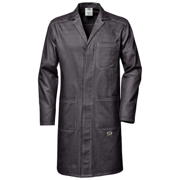 Halāts izgatavots no 100% Massaua sanforizētas kokvilnas 3/1, svars 270 g/m². Garumā līdz ceļiem ar trīskāršu kontrastējošu šuvi uz pleciem, slēptu četru pogu aizdari, divām apakšējām kabatām un krūšu kabatu. Šuves un aizdares kontrastējošā krāsā.