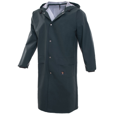 PROBALTIC lietusmētelis ir nostiprināts ar spiedpogām. Dubultmetinātas šuves. Ar aukliņu regulējama kapuce. Divas sānu kabatas ar atlokiem un elastīgām iekšējām aprocēm.