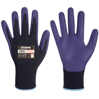 STEPO GEMINI darba cimdi ir izgatavoti no īpaši plāna neilona (adījuma blīvums – 18G), plauksta ir pārklāta ar mīkstām nitrila putām. Šīs īpašības nodrošina, ka cimdi ir ārkārtīgi elastīgi, viegli un pielāgojas rokai – kā otra āda. Elastīgā aproce labi pieguļ plaukstas locītavai. Nitrila putu pārklājums plaukstā nodrošina lielisku saķeri ar sausām virsmām un visaugstāko izturību pret berzi. Cimdiem ir arī lieliska gaisa caurlaidība un taustes jutība, padarot tos ideāli piemērotus darbam, kam nepieciešama rūpība un precizitāte.