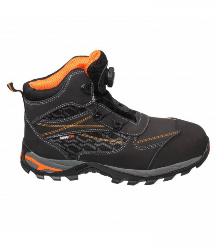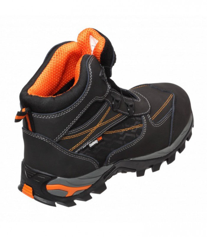 • Dabīgas, piesūcinātas nabucco ādas virspuse visneaizsargātākajās vietās ar tekstila gaismu atstarojošiem ieliktņiem palielina mitruma iztvaikošanu no apaviem un valkātāja drošību un redzamību tumsā.