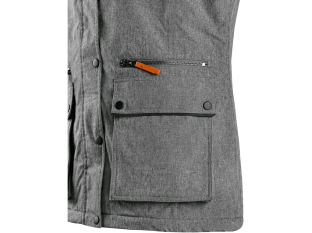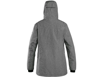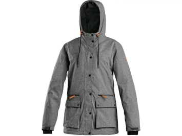 Sieviešu polsterēta jaka ar kapuci, ūdensizturīga un vēja necaurlaidīga. Jakai ir mazas kabatas ar rāvējslēdzēju un apakšā kabatas ar atlokiem un atstarojošiem aksesuāriem. Ir arī regulējamas aproces uz piedurknēm, elastīgas iekšējās aproces, aizdares apakšā, iekšējā krūšu kabata, TPU membrāna un līmētas vīles. Melnas atstarojošas detaļas uz kapuces. Ūdensizturīgs materiāls līdz 5000 mm, elpojamība 3000 g/m2/24h.