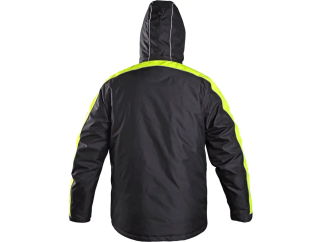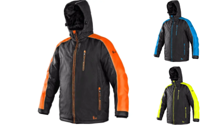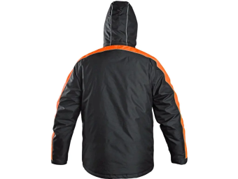 Vīriešu polsterēta jaka, ūdensizturīga un vēja necaurlaidīga, ar padušu ventilāciju, noņemamu kapuci, elastīgu iekšējo aproci piedurknēs, savelkamu apakšdaļu, līmētām vīlēm, atstarojošām svītrām. Krūšu kabata ar rāvējslēdzēju, 2 sānu kabatas ar rāvējslēdzēju, iekšējā kabata ar rāvējslēdzēju.