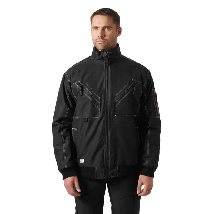 Ar flīsa oderi aprīkotā Bergholm jaka piedāvā maksimālu praktiskumu darbiniekiem, kas strādā būvlaukumos ārpus telpām. Oderēta un polsterēta, lai pasargātu jūs no aukstuma, tai ir nolokāma apkakle ar zoda aizsargu un rievota apakšmala un aproces, lai nodrošinātu ciešu piegulšanu. Jakai ir iekšēja Velcro® kabata kredītkaršu un skaidras naudas glabāšanai, kā arī vairākas ārējās kabatas priekšpusē un kreisajā piedurknē nelielu instrumentu, personīgo priekšmetu un darba dokumentu glabāšanai. Iekšējais rāvējslēdzējs ļauj to izmantot ar šujmašīnu izšūšanai.