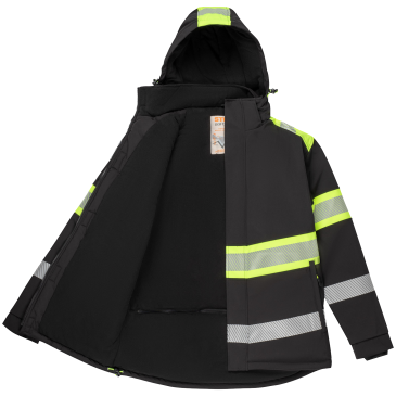 Ūdens un vēja necaurlaidīga, "elpojoša" Softshell ziemas darba jaka MICHIGAN. Izgatavota no inovatīva, elastīga Softshell Stretch auduma, tā nodrošinās ārkārtīgi komfortablu sajūtu kustību laikā. Īpaša TPU membrāna neļauj mitrumam iekļūt apģērbā, bet ļauj ķermenim "elpot", iztvaicējot ūdens tvaikus uz āru. Segmentētas atstarojošas svītras. Ar iekšējām aprocēm. Regulējama izmēra noņemama kapuce. Mīksta un silta flīsa auduma apkakle. Jakas apakšdaļa ir regulējama ar aukliņām iekšpusē. Ūdensnecaurlaidīgs krūšu rāvējslēdzējs. Zem atlokiem ir paslēpti jostas kabatu rāvējslēdzēji un divvirzienu galvenais rāvējslēdzējs. Iekšējais rāvējslēdzējs oderē logotipa izvietošanai. Divas kabatas apģērba jostasvietā, viena kabata krūšu daļā, viena iekškabata.